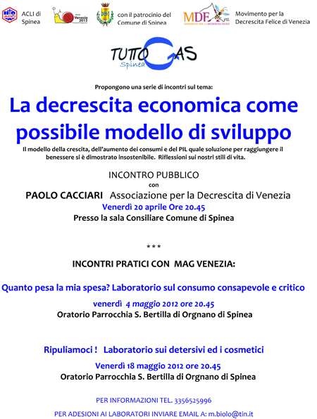 L'associazione TuttoGAS (Gruppo Acquisto Solidale) promuove degli incontri sul Movimento per la Decrescita Felice, nato nel 2000.